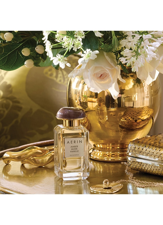 AERIN's Fragrance Collection is a wardrobe of distinctive perfumes inspired by Aerin's own travels, experiences and memories. Amber Musk Vanille is a Amber Gourmand perfume inspired by sweet, cherished memories.